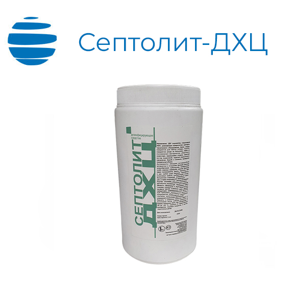 «Септолит-ДХЦ» — дезинфицирующее средство в форме таблеток. Выпускается в упаковке 300 штук, каждая таблетка весит 3,3 г и имеет цилиндрическую форму диаметром 20 мм, толщиной 6,5 мм, с характерным запахом хлора.